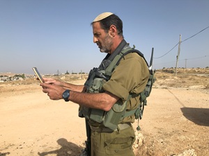 uppsikt av israeliska soldater som tittade på från en kulle utan att