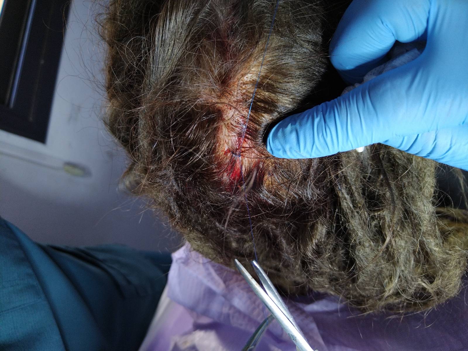 försökt undkomma bosättarna. Hon fick en hjärnblödning till följd av